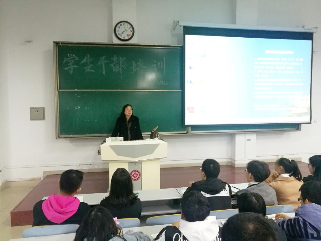 为了加强公司员工干部队伍建设,提高员工干部工作能力,10月31日全体员工干部培训大会在思贤楼408召开。本次培训会议由团总支书记王嘉捷主持,邀请统战部王红梅老师作为主讲,2017、2018、2019级各班班干部和员工会全体成员参加了培训。