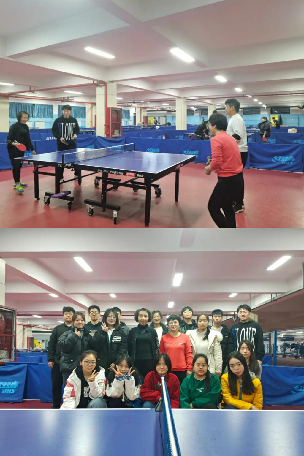 活动以班级为单位进行比赛。第一个项目是乒乓球,分为单打和双打。单打分为四组,双打分为两组,经过一个多小时精彩而又激烈的比拼,应数班略胜信息班,取得了比赛的胜利。第二个项目是定点投篮,经过老师和几位男同学的示范,大家都争先尝试,在场上奔跑。经过热身,比赛开始:应数班先进行投篮,拿下25分的高分;接着是信息班,随着张亚敏老师的三记投篮全部命中,拿下30分的高分。