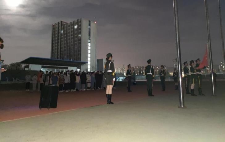 早晨六点半,升国旗仪式正式开始。国旗护卫队步伐铿锵有力、整齐划一。随着庄严的国歌声,五星红旗缓缓升起。刘昕雨以《请党放心,强国有我》为题做了国旗下演讲,号召全体同学树立远大理想,刻苦学习,立志成才。在青春激昂的团歌合唱后,优秀团员代表张锦雲带领大家重温入团誓词,誓词唤起了每一位团员的不辱使命、永葆先进的团员意识。