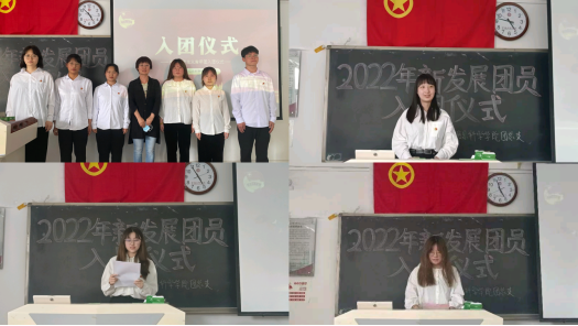 入团仪式在雄壮的国歌声中拉开帷幕。李萍宣读了2022年新发展团员名单,王欢为6名新团员颁发、佩戴团徽。由团总支副书记安彤领誓,新老团员面向鲜艳的共青团团旗进行了庄严的宣誓。随后团员代表杜宾利讲述了自己加入共青团的体会和成长经历,并对新团员的发展提出了一些建议;新团员代表刘紫茹讲述了自己对共青团的认识和感受,并郑重承诺将在以后的学习、生活中努力践行团员义务,接受团组织的考验与考察。