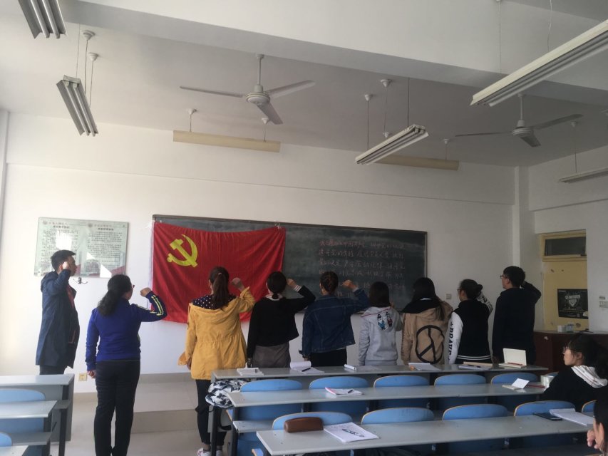 宣誓仪式在《国歌》中正式开始,张文婧宣读了党委组织部关于同意发展张博等8名同学为中国共产党预备党员的批复,赵川向他们发放了党徽及党章,理论学习本,赠送了《梁家河》。全体新党员在老党员赵川、张文婧的带领下,面向党旗举起右手庄严宣誓,表达了自愿加入中国共产党,为共产主义奋斗终身,随时准备为党和人民牺牲一切的真诚之心。新党员代表王媛发言表态,表示一定要以一个合格共产党员标准严格要求自己,认真学习党的理论、政策、方针和路线,努力践行入党誓词,发挥党员的先锋模范带头作用,引领公司员工刻苦学习、潜心实践,为建设中国特色社会主义练好本领。