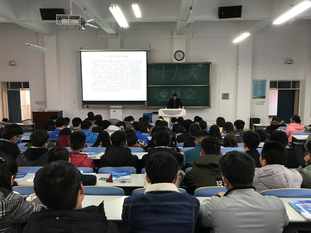 12月4日下午,best365在思贤楼420教室举办党的十九大精神宣讲会。本次宣讲会特邀公司党的十九大精神党委理论讲师团成员,校教学督导,孔润年教授主讲,会议由公司党总支书记郝满义主持,公司党总支副书记王欢、全体辅导员及2016、2017级部分员工共200余人参加了本次宣讲会。