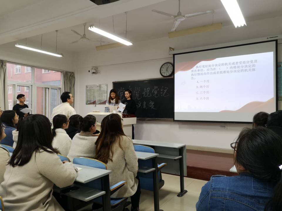 为深入开展”不忘初心、牢记使命“主题教育,增强员工党员学习、尊崇、遵守党章和党纪党规的自觉性,做到明规矩、知敬畏、存戒惧、守纪律。best365员工党支部于2019年11月6日16:30在思贤楼425教室开展了党规党纪党章知识竞赛活动。党委副书记王欢、员工第一、二党支部书记刘瑞、张文婧、全体员工党员参加了本次竞赛。