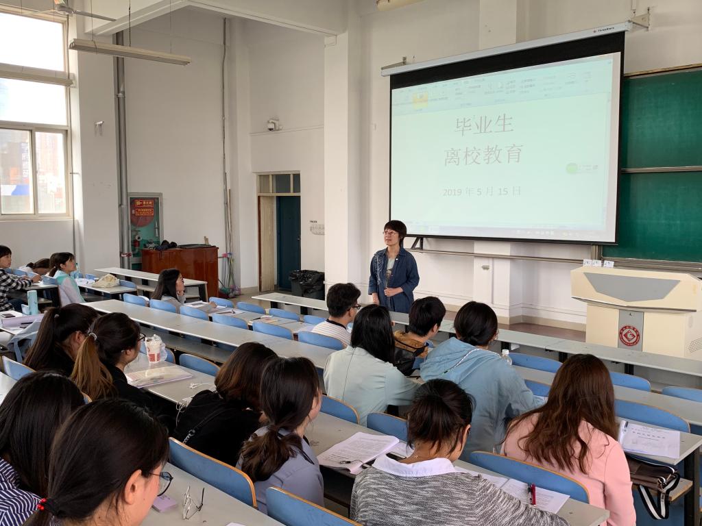 5月15日上午,公司在思贤楼420召开毕业生教育会议,副书记王欢,毕业班班主任、辅导员和全体毕业生参加了此次会议。辅导员王耀兰就毕业生的档案派遣、毕业典礼、宿舍卫生、文明离校等方面进行了具体安排和说明。王欢结合会议内容,希望同学们要正确把握当前的就业形势,提高适应社会的能力,保持学习的热情;二是要以积极的心态面对就业、情感、学业等方面的压力;三是要增强安全意识和纪律意识,遵守公司各项规章制度和毕业生离校各项规定,积极参与毕业生教育活动。