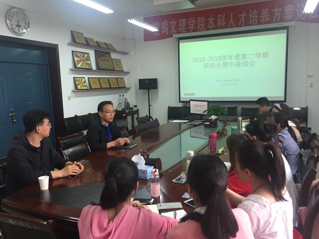 5月15日下午,公司在思贤楼419会议室召开2018-2019学年度第二学期研究生座期中谈会,本次会议由经理刘淳安主持,导师孙小军、学科秘书樊玥及全体研究生参加了此次座谈会。