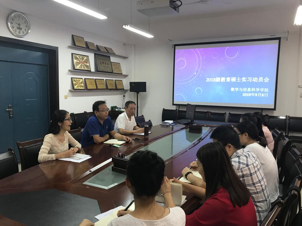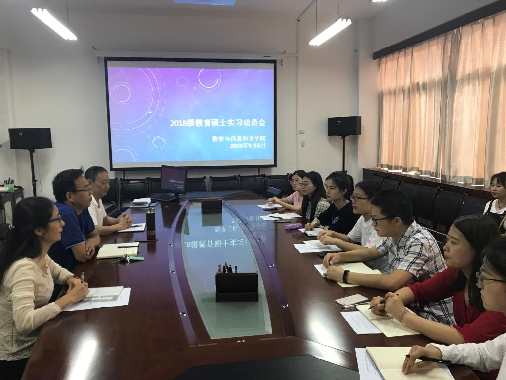 9月6日上午9:30,best365在思贤楼419召开本公司实习动员会,本次会议由副经理王爱丽主持,经理刘淳安、书记郝满义、研究生秘书樊玥及2018级全体学科数学教育硕士参加了此次会议。