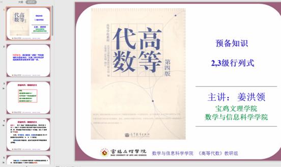 四、姜洪领,博士,副教授,研究方向为应用偏微分方程,主讲《代数学》、《高等代数》、《近世代数》、《微分方程数值解法》、《概率论与数理统计》、《高等数学》、《线性代数》等课程。主持陕西省教育厅专项研究项目1项、宝鸡市科技局软科学研究项目1项,校级重点项目3项,作为主要完成者参与国家自然科学基金2项。发表科研论文20多篇,其中被SCI收录7篇,被C刊收录11篇。研究成果获得宝鸡市自然科学优秀成果奖3等奖1项。
