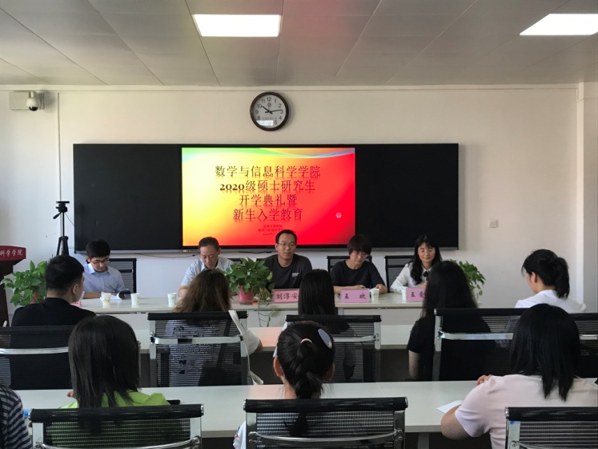 9月5日上午10点,公司在思贤楼424报告厅举行了2020级硕士研究生入学教育暨开学典礼。会议上公司经理刘淳安、党委书记郝满义、党委副书记王欢、以及副经理王爱丽出席会议,向同学们表示祝贺和热烈欢迎,并分别做出重要讲话。刘淳安经理就公司的专业设置、团队建设和研究生导师队伍等基本情况向各位同学进行了介绍和说明,郝满义书记分享了如何保持身心健康和树立正确的价值观,王欢副书记就研究生的日常管理和行为规范等方面向同学们进行了说明,王爱丽副经理进一步强调了规划好研究生阶段的学习和树立远大志向的重要性。