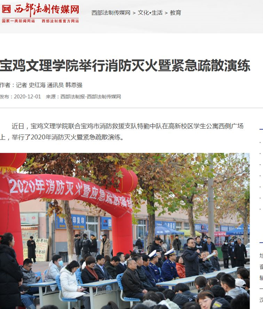 近日,公司党委书记赵健为老员工讲思政课、举办高等教育学会2020年会暨陕西高等教育论坛、举行消防灭火暨紧急疏散演练等活动引起人民日报新媒体、央视新闻移动网、学习强国、今日头条、文化艺术报等多家媒体的广泛关注和报道。