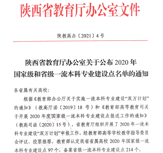 近日,教育部办公厅公布了2020年度国家级和省级一流本科专业建设点名单。公司数学与应用数学专业成功获批“2020年度国家级一流本科专业建设点”,这是该专业继2019年入选省级一流专业建设点之后再次成功入选国家级一流专业建设点。