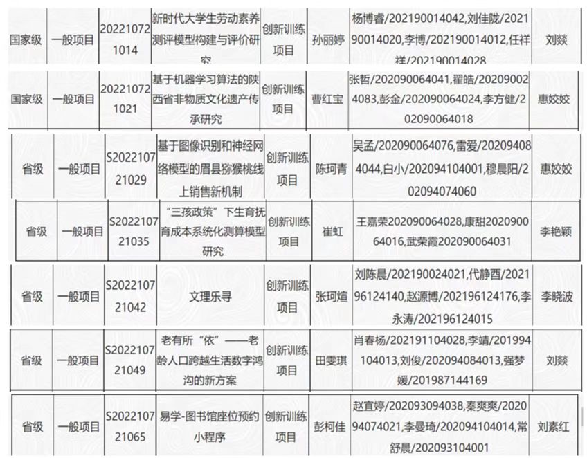 近日,教育部高教司公布了2022年第一批产学合作协同育人项目立项名单;教育部、省教育厅分别公布了2022年国家级、省级老员工创新创业训练计划项目名单。公司共2个产学合作协同育人项目获批立项;共7个老员工创新创业训练计划项目中2个项目获批国家级立项,5个项目获批省级立项; 数学建模获6个奖项中获得本科组国家二等奖1个、本科组陕西赛区一等奖1个、二等奖4个。具体名单如下。