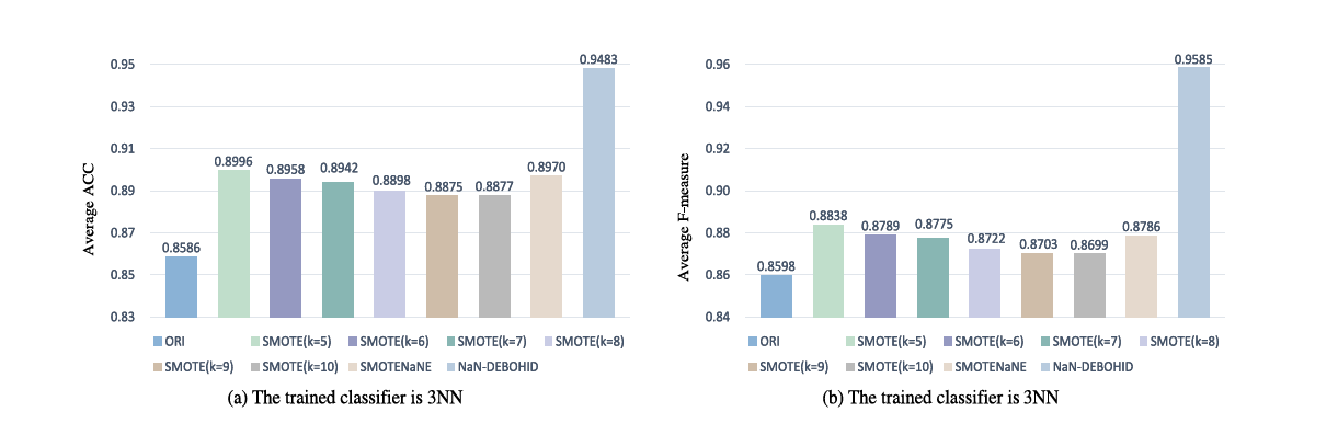 论文针对不平衡数据的分类问题提出了一种基于差分进化与自然近邻的过采样方法(NaN-DEBOHID)。该工作在过采样过程中通过应用自然近邻理论与DEBOHID方法以获得更具代表性的少数类样本并生成一致性较好的合成样本,为类不平衡问题的研究提供了新的思路。同时,该工作也是继李艳颖教授团队在Knowledge-Based Systems(中科院1区TOP期刊,IF=8.039)、Expert Systems with Applications(中科院1区TOP期刊,IF=8.5)发表的两篇学术论文之后的关于高维复杂数据分析的又一成果,以上两篇论文公司均为唯一单位。(best365文/王夏琳 审核/刘淳安)