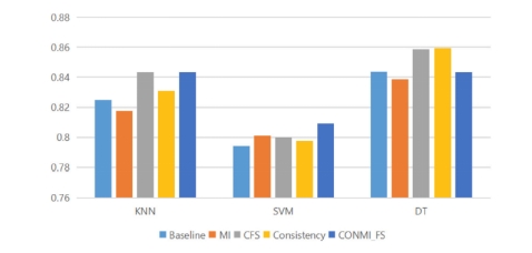 特征选择是一种重要的降维预处理技术,它通过获取信息量最大的特征子集来降低数据集的维数,同时最大限度地保留有效数据信息。针对特征之间依赖关系的单一度量方法,论文提出基于对称不确定性和皮尔逊相关系数的集成特征选择算法,该算法从线性和非线性两方面度量了特征之间的相关性。算法首先使用信息增益寻找与类变量相关性最高的一个特征,将信息增益值最高的特征添加到最终子集中。然后选择每次迭代满足新的评价函数最大的特征加入到最终子集中,直至达到停止标准为止。所提算法能有效选择出与类变量强相关、与其他已选特征低冗余的特征子集。在二十个公开数据集上的实验结果表明,所提方法获得的最终特征子集在大多数数据集上具有优异的分类性能,且与其他广泛使用的监督特征选择算法相比,数据维度的约减率更高。(文、李艳颖 审核人、刘淳安)