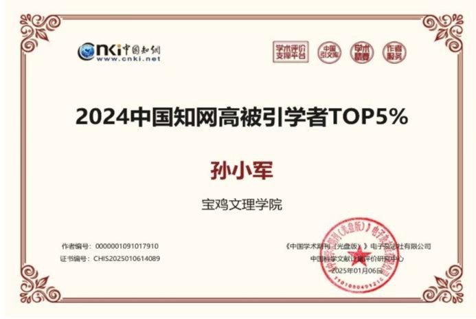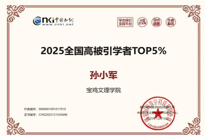 近日,中国知网下属的中国科学文献计量评价研究中心公布“2025年全国高被引学者”榜单,公司孙小军教授成功入选TOP5%高被引学者行列。 这是孙小军教授继2024年之后,连续第二年跻身该榜单,充分彰显了他及其团队在数学课程与教学论领域较深的学术积淀与持续的学术影响力。