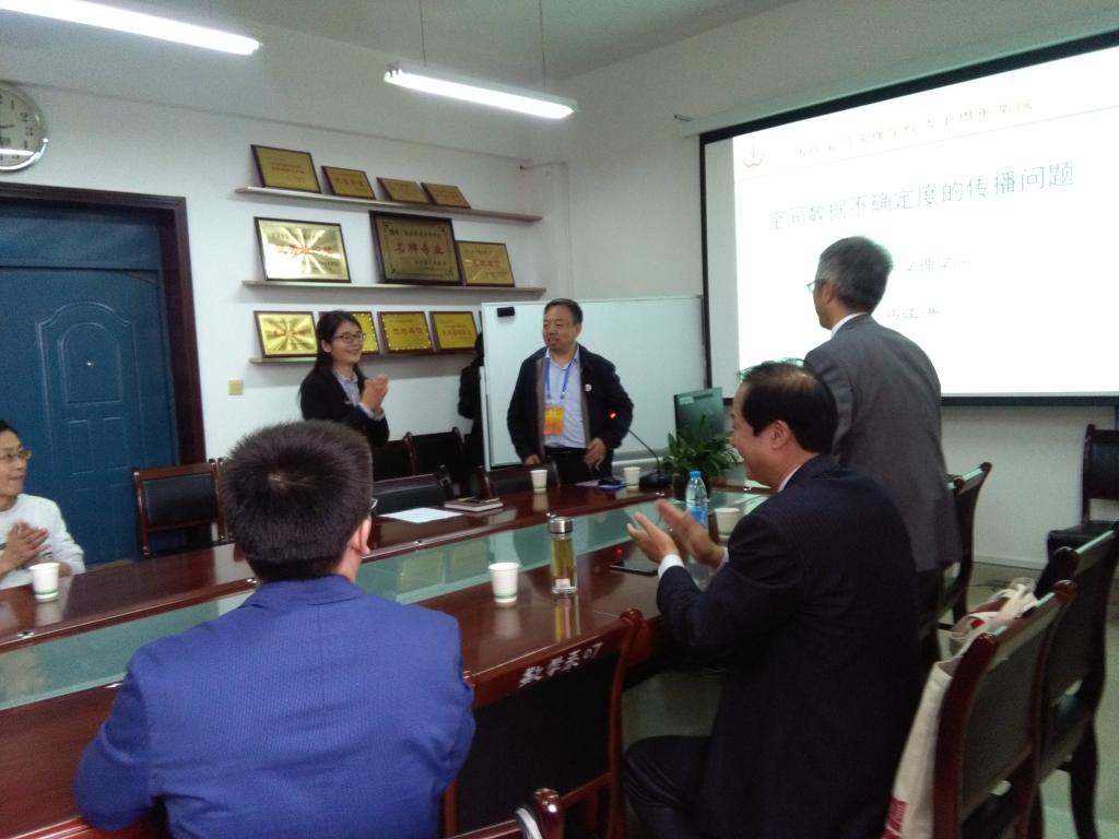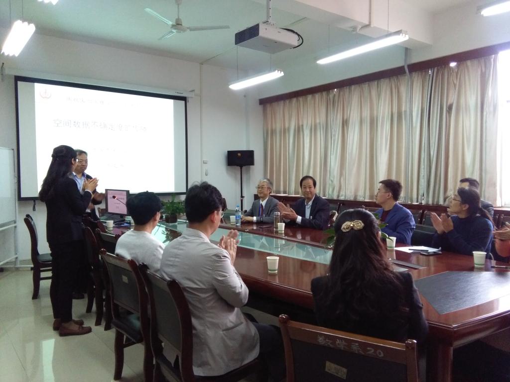马江洪教授的报告题目为《空间数据不确定度的传播问题》。马教授详细介绍了空间数据及不确定度的概念及意义、不确定度传播问题的研究现状与最新研究方法。马教授与现场师生进行了交流互动,对提出的问题进行了详细解答。